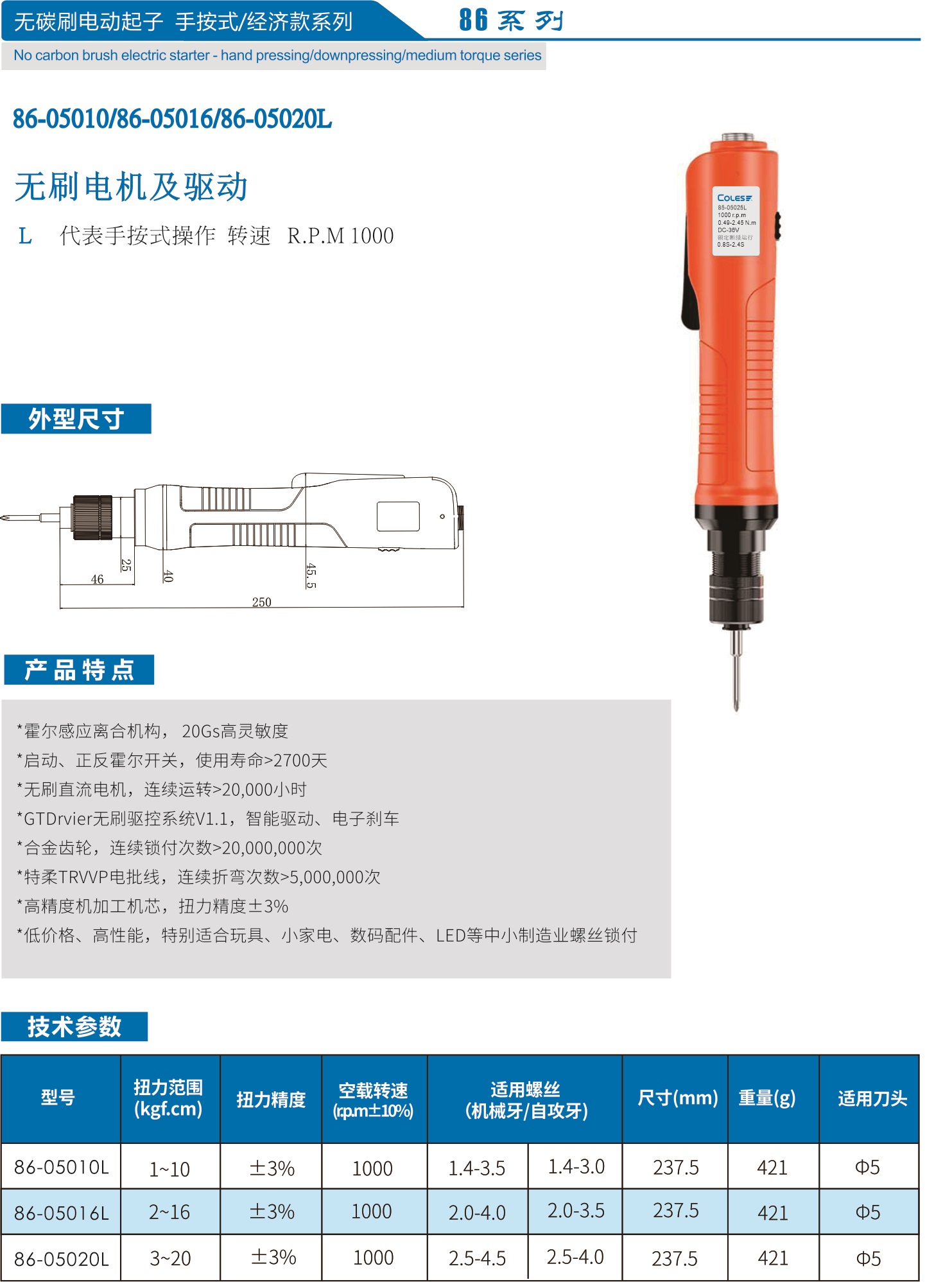 86系列-无刷电动起子-手按式经济款